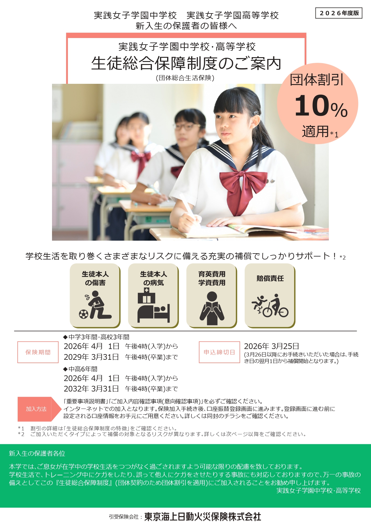 2026年度に入学される方はこちらのパンフレットにて保険概要をご確認ください ・ パンフレット(PDF 5.19MB) ・ 加入方法(PDF 1.04MB)