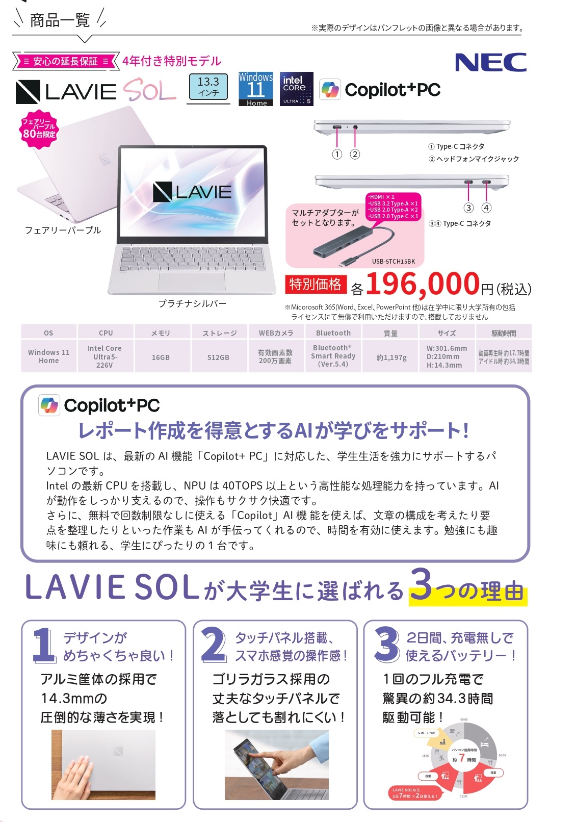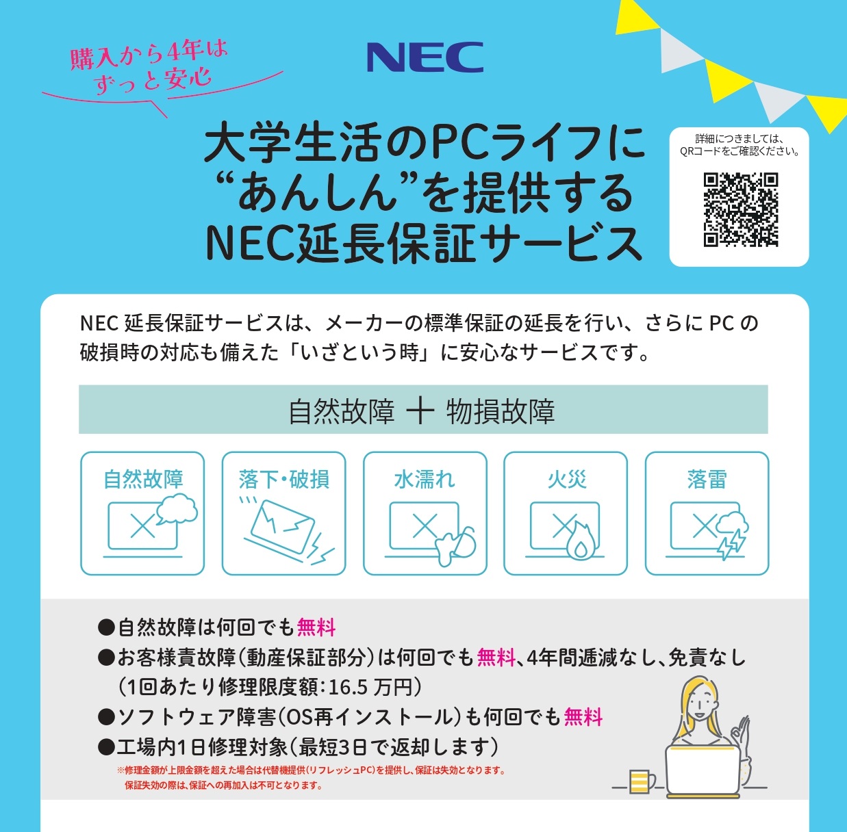 - NEC保証サービス4年付き(自然故障+物損故障)