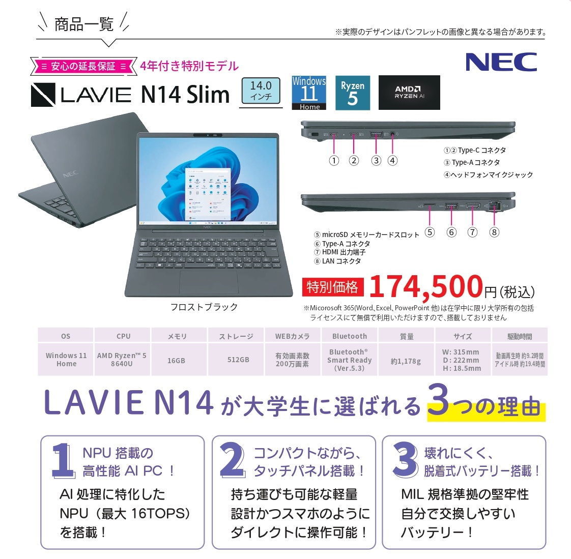 - NEC保証サービス4年付き(自然故障+物損故障)